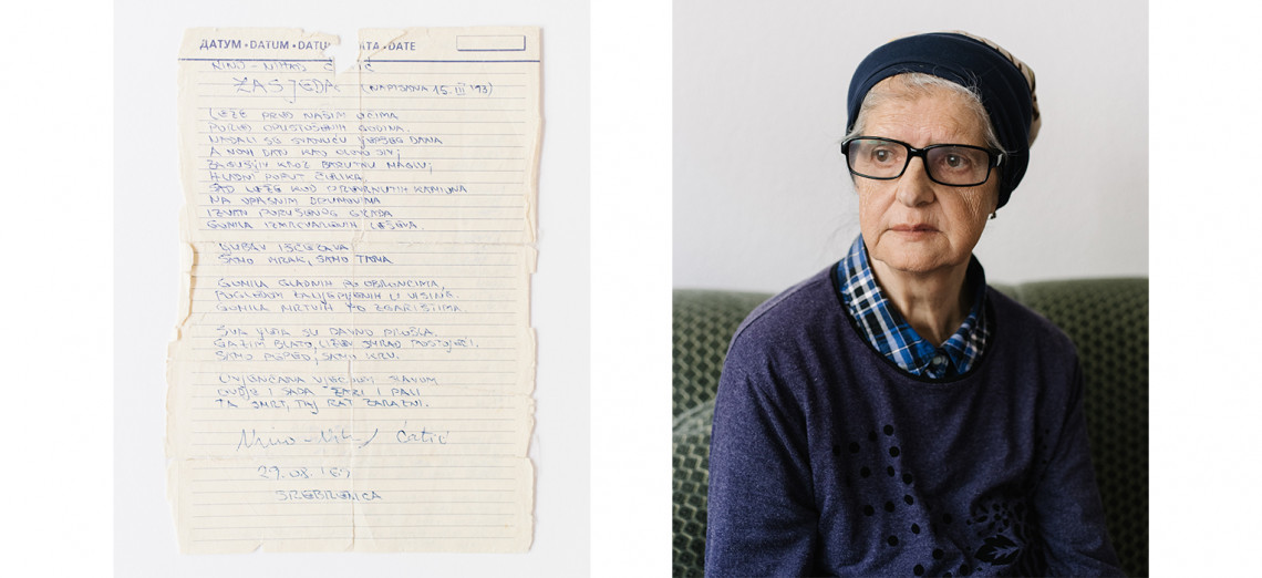 Ten years later, her husband’s remains were found in a mass grave and identified, but Hajra is still waiting for information about Nino’s fate. A hand-written poem that Nino wrote in March 1993 was found at the location in woods where he was last seen in July 1995. It is one of the very few personal belongings Hajra has from Nino.